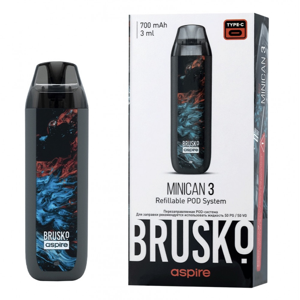 Перезаправляемая Под-Система Бруско Миникан 3 (Brusko Minican 3) 700 mah, Серый Флюид - купить в Саранске